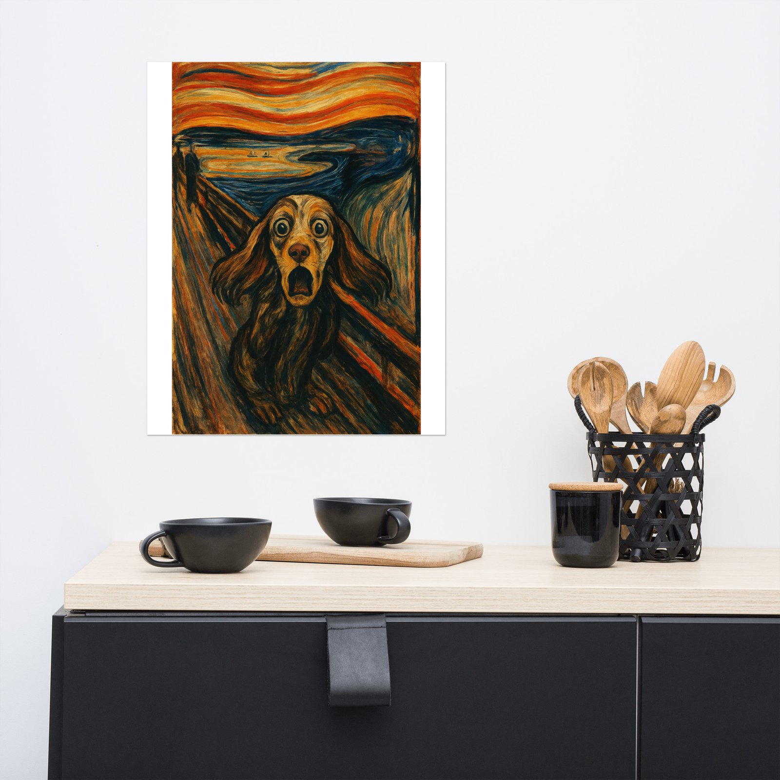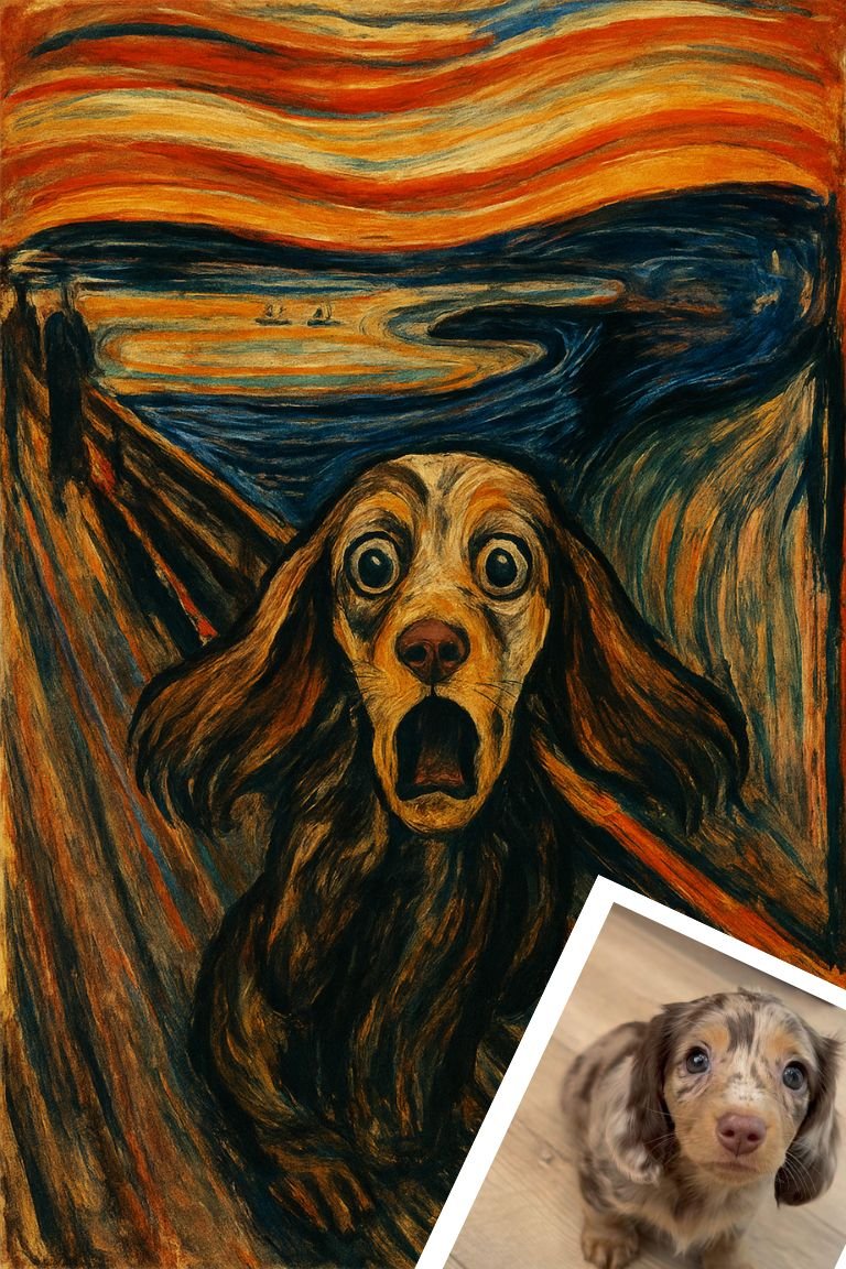 We use a photo of your pet and turn it into a work of art. Expressionist movement art style. This design is based on the style of the “The Scream” by Edvard Munch. We put your pet into iconic Expressionist art!