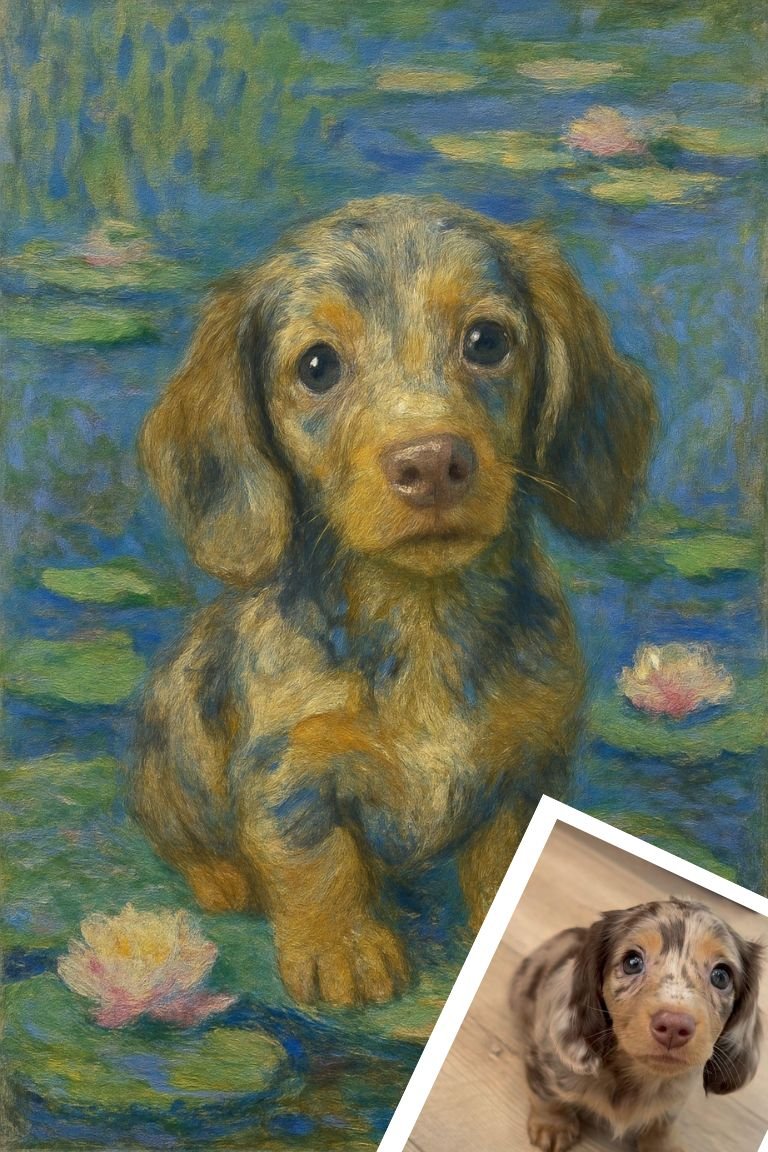 monet pet portrait sample - dogWater Lilies – Monet Style Custom Pet Portrait